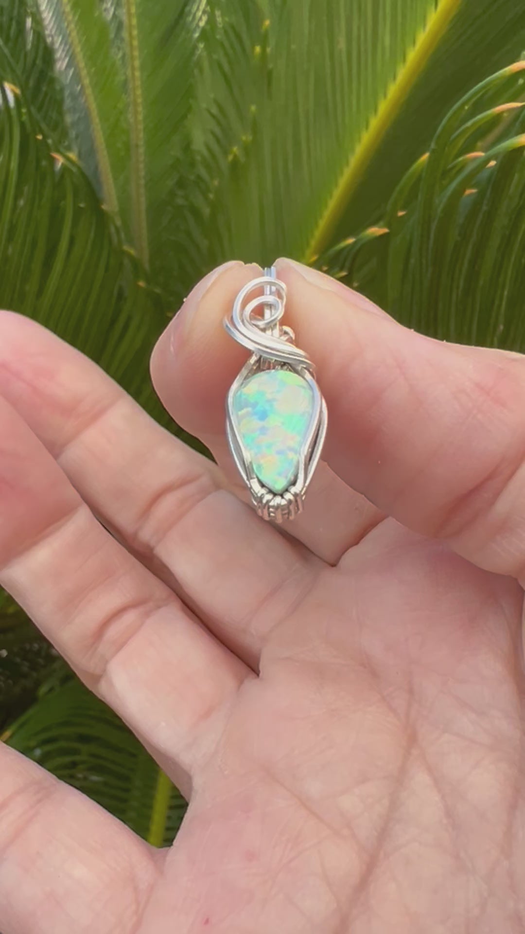 Aura Opal Doublet (Man made opal) wrapped in .925 Sterling Silver wire 1 1/4 inch long
