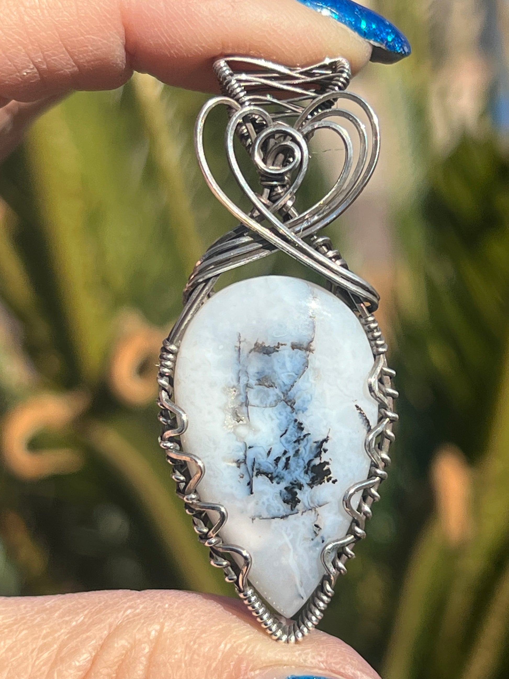 Dendritic Agate in Sterling Silver Oxidized and polished for an Antique look