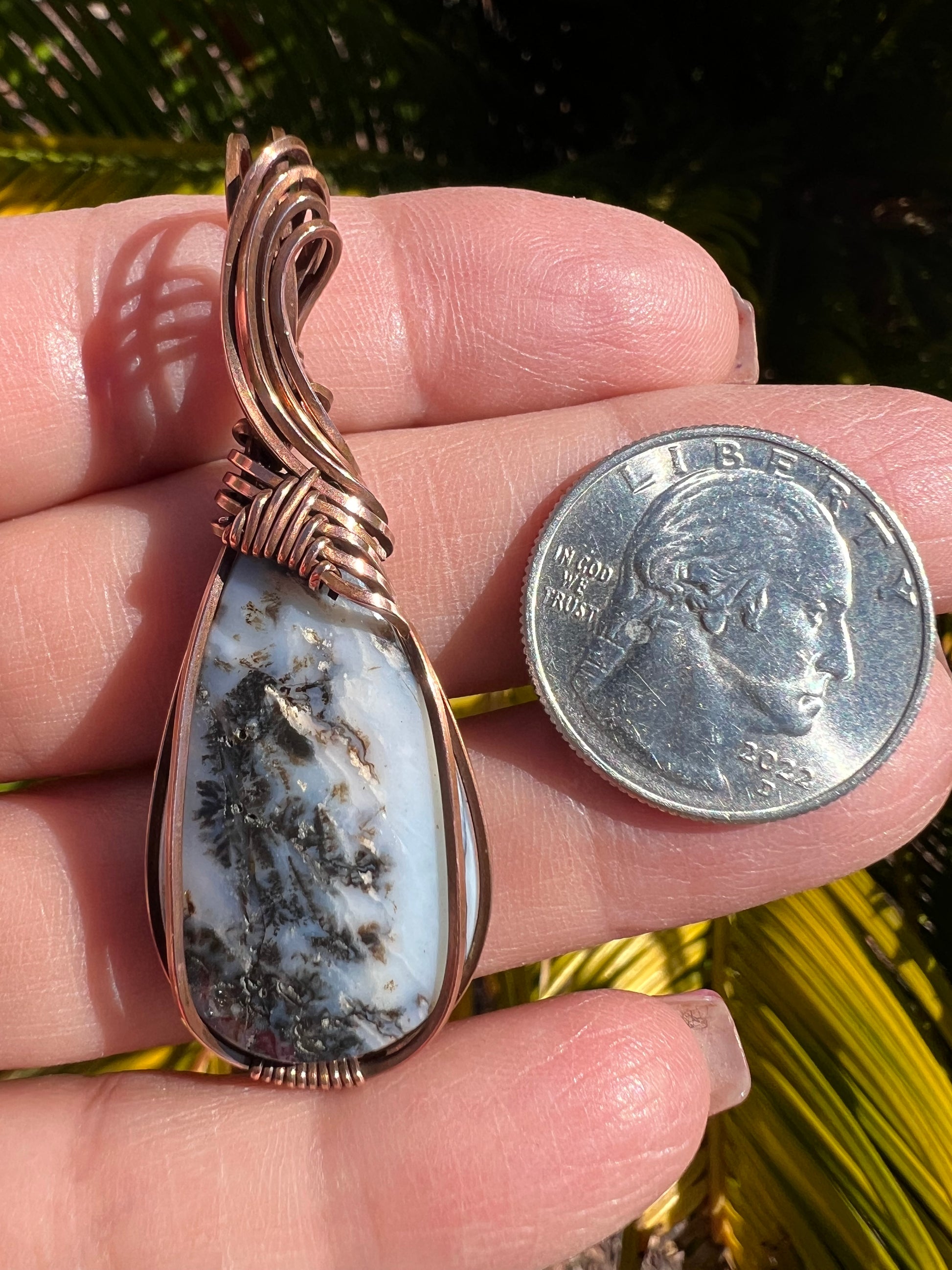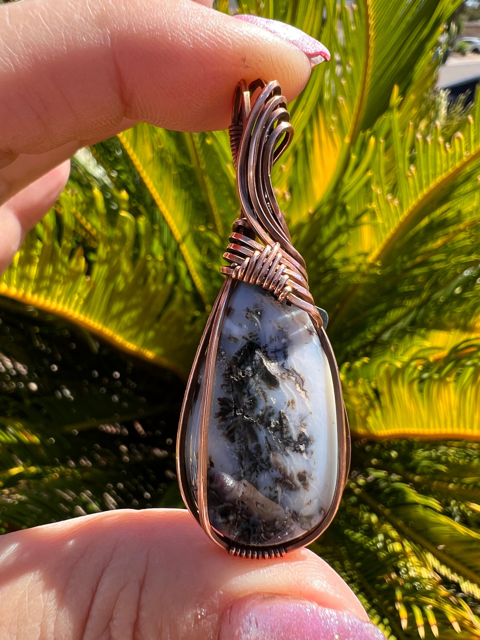Wrapped in warm copper tones, this one-of-a-kind piece channels grounding energy and spiritual clarity. Dendritic Opal is known for supporting deep reflection, shadow work, and energetic cleansing. It whispers to the dreamer, the seeker, the old soul.