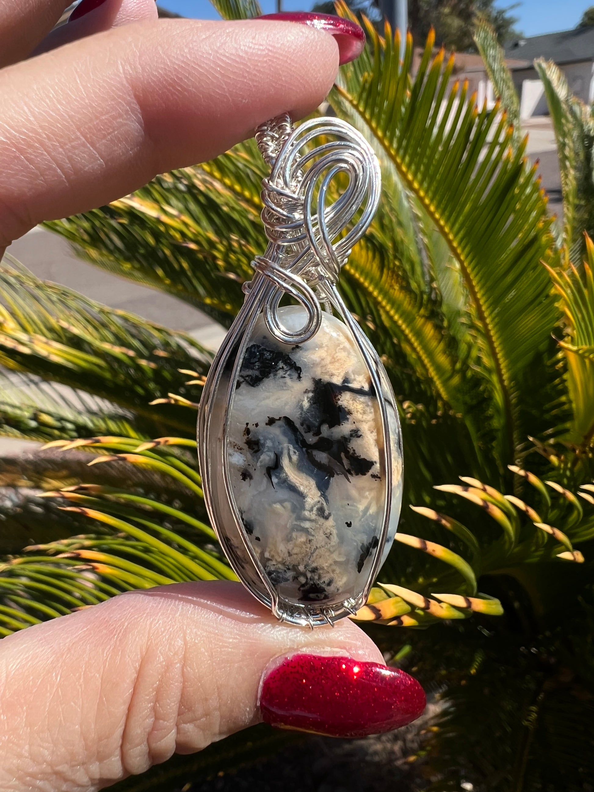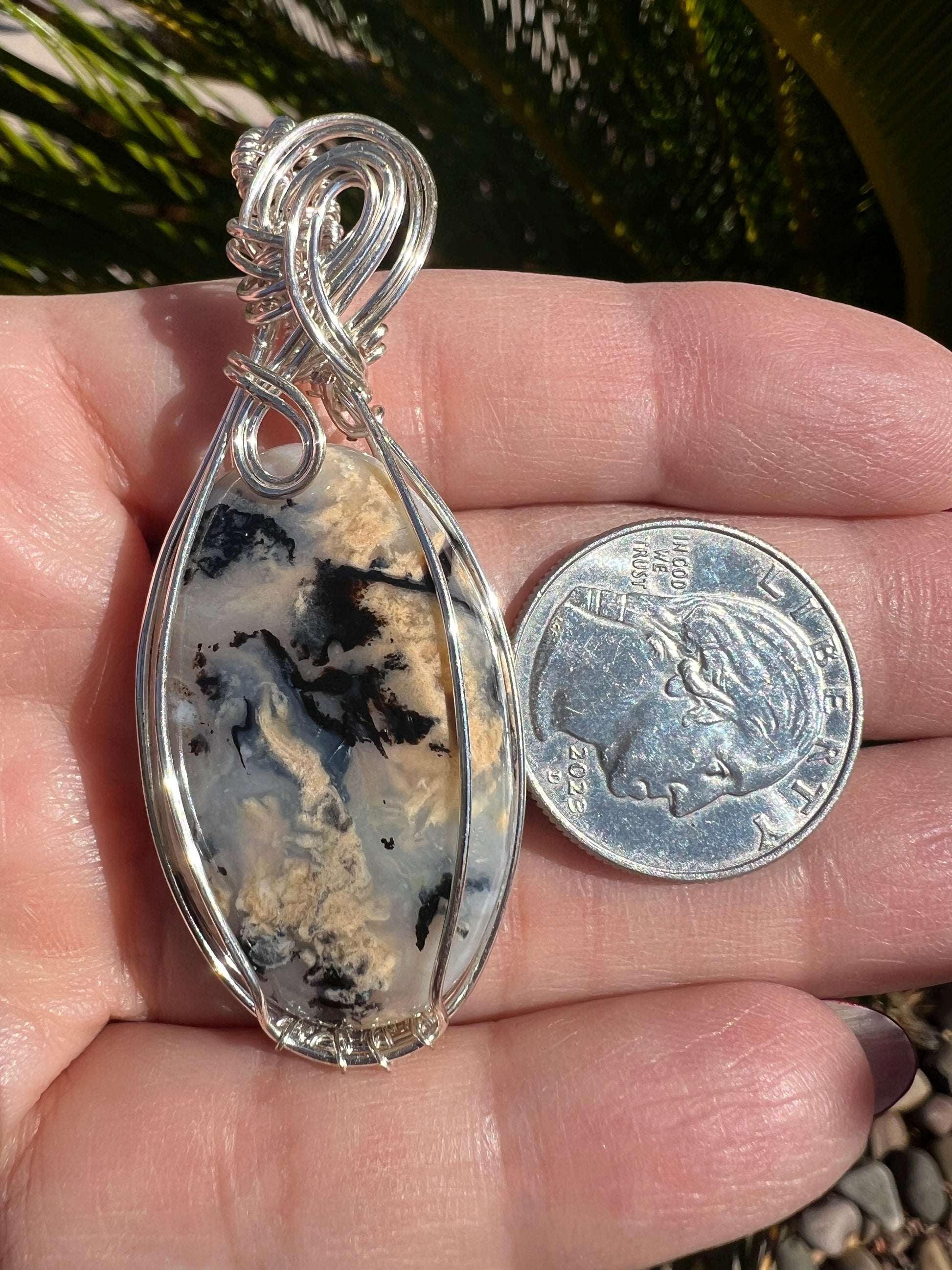 Dendritic Tiger stone wrapped in Non-tarnish silver plated wire
