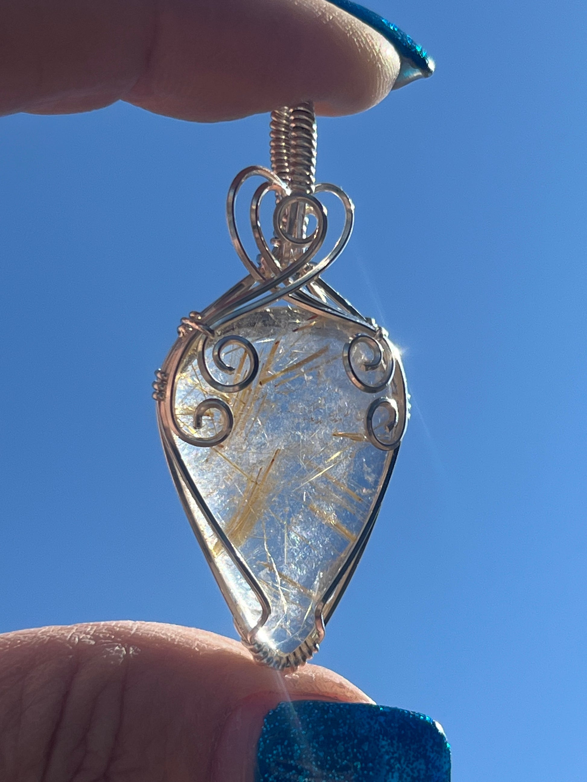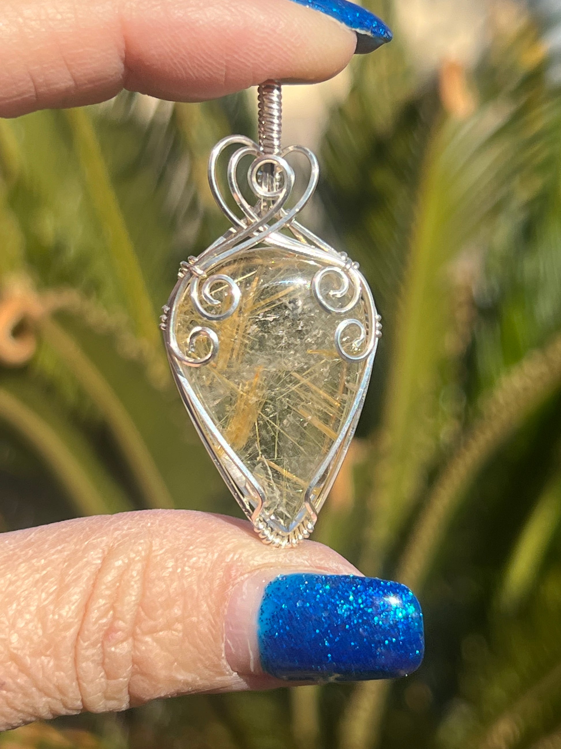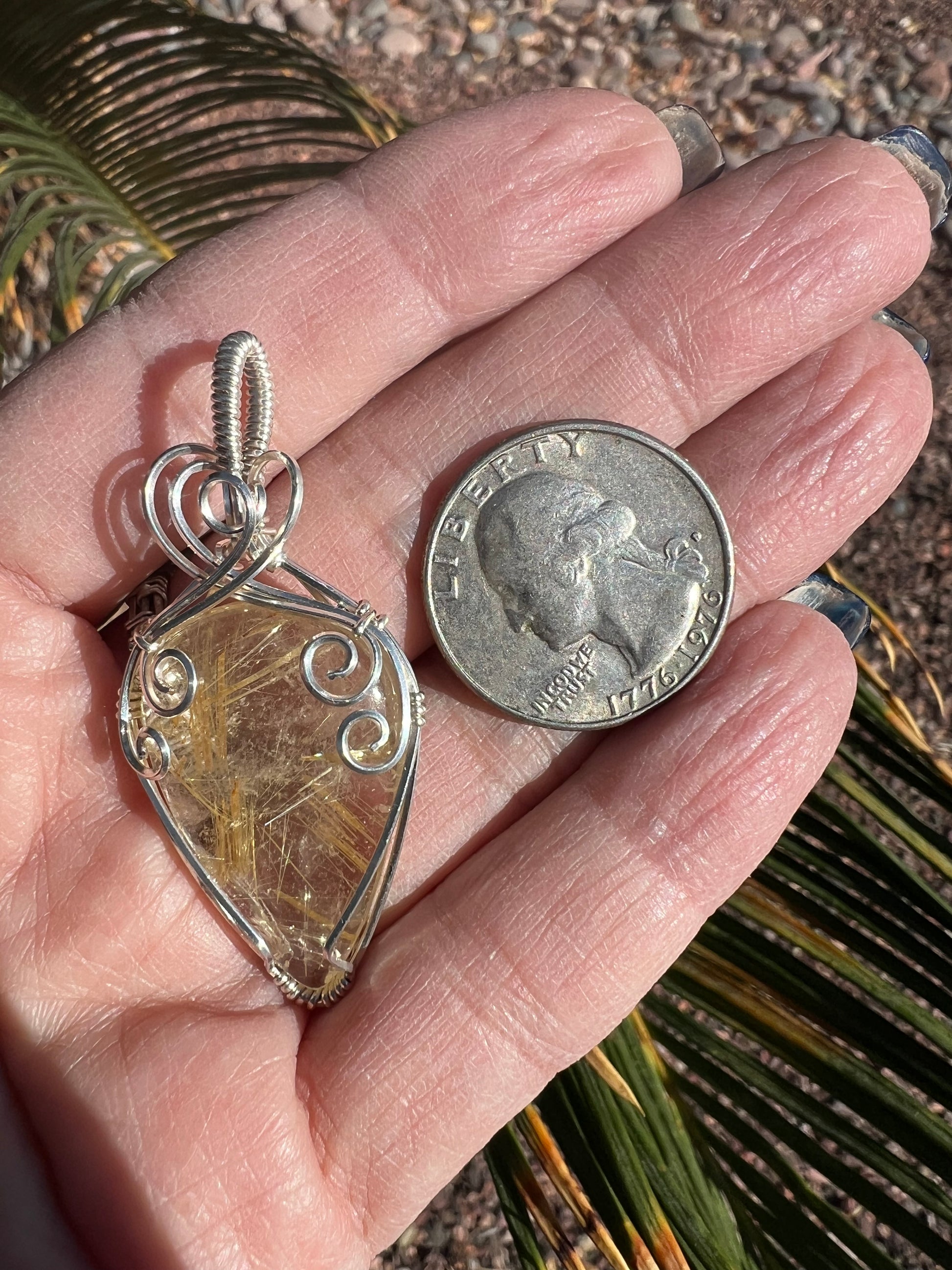Golden Rutilated Quartz Wrapped in Sterling Silver