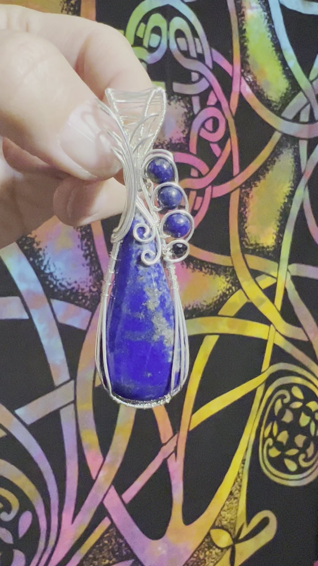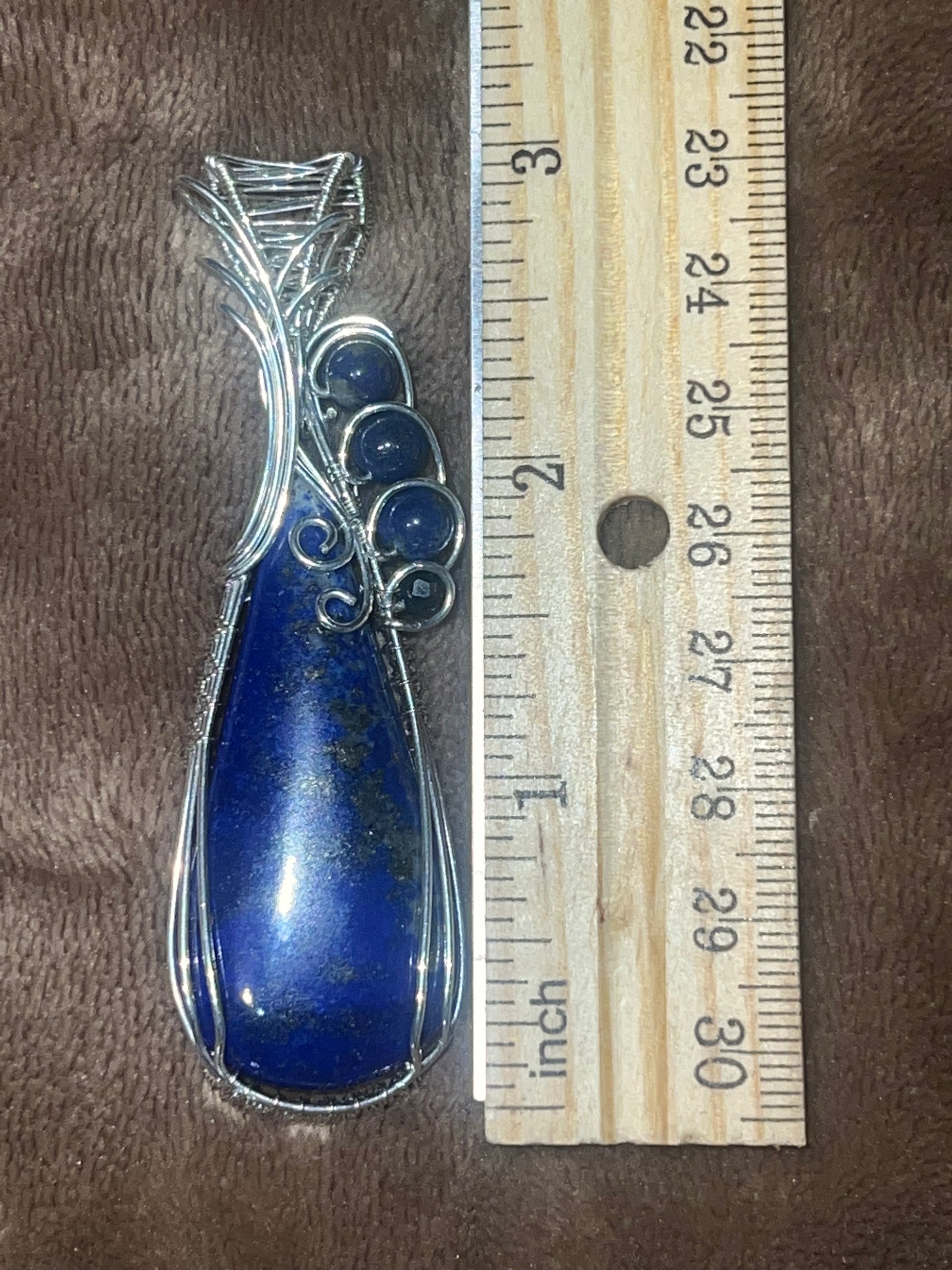 Tear drop Lapis Lazuli wrapped in sterling silver accented with lapis beads and a sapphire bead.