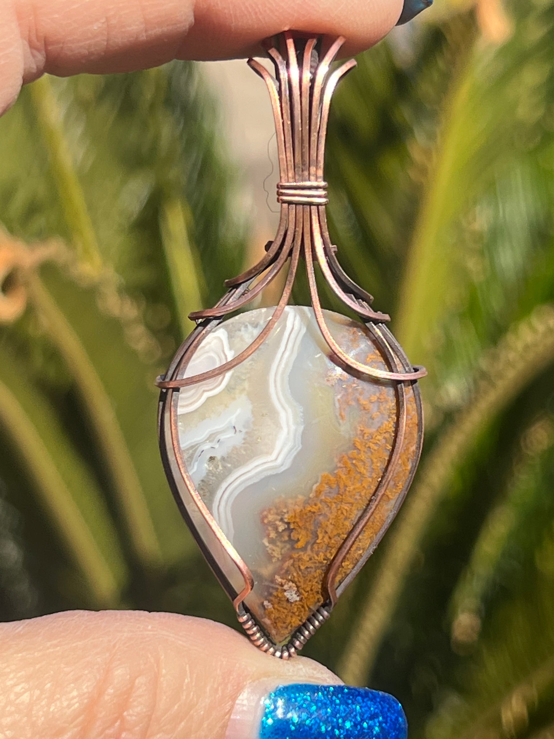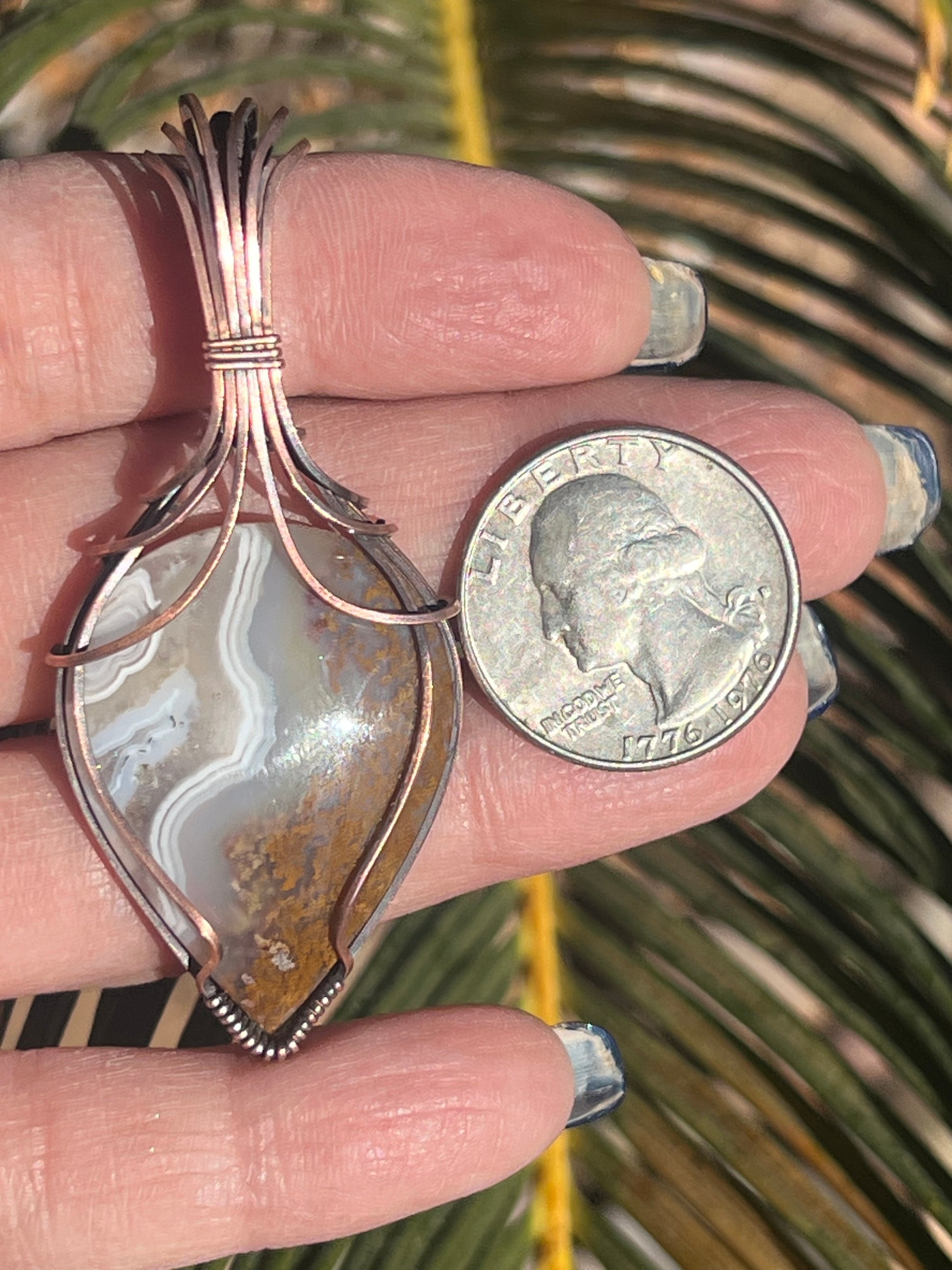 Moss Ternate Wrapped In Copper wire Oxidized and Polished for an Antique look.