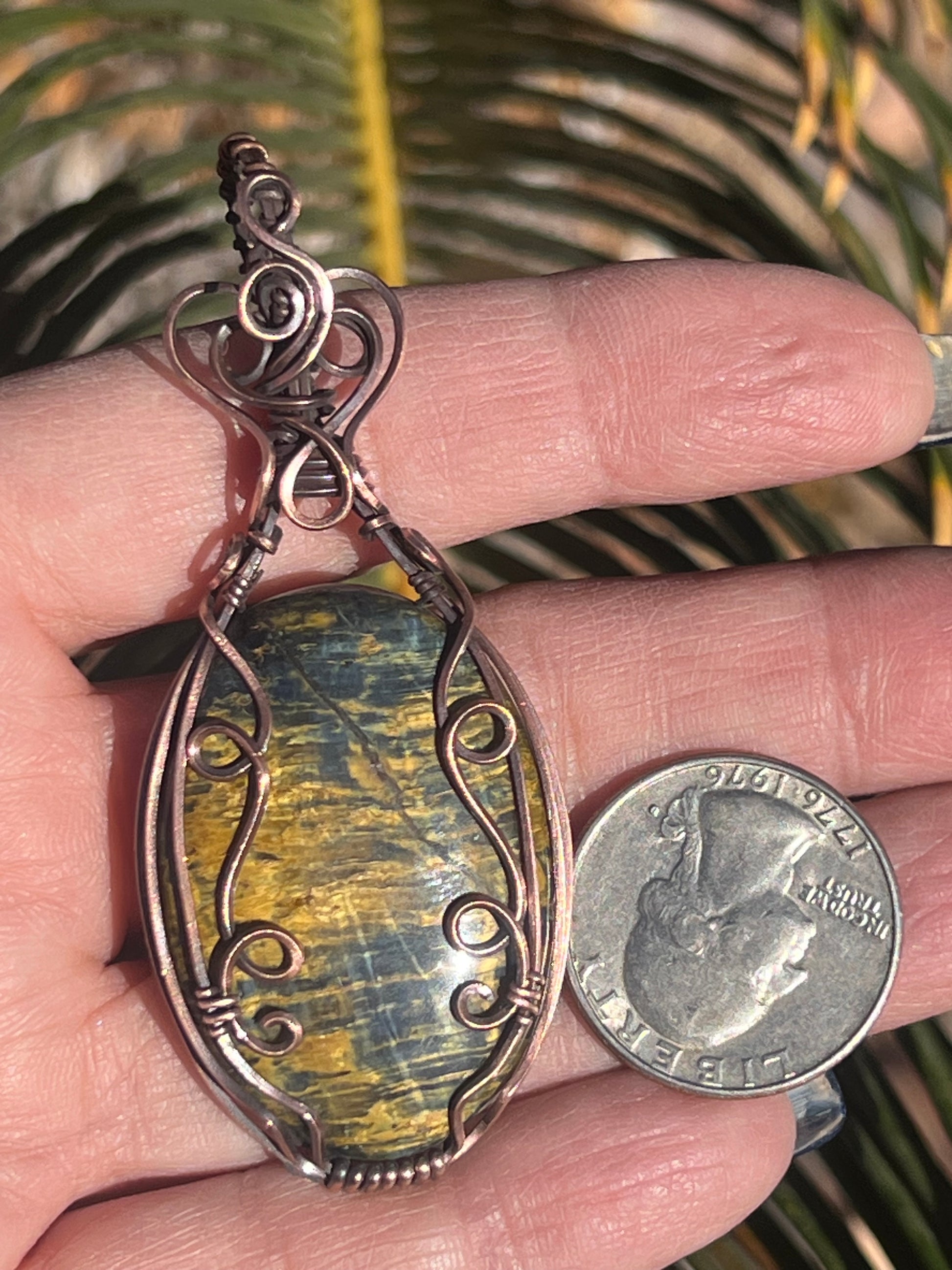 Neelite Wrapped in Copper Wire Oxidized and Polished for an Antique look
