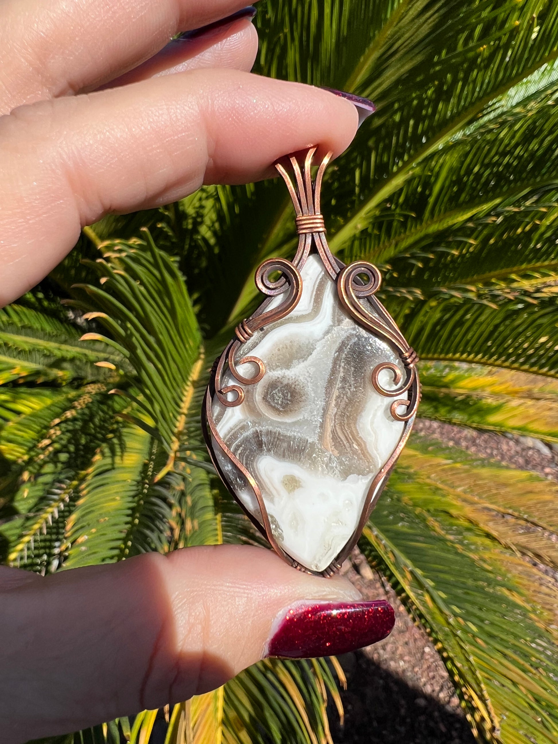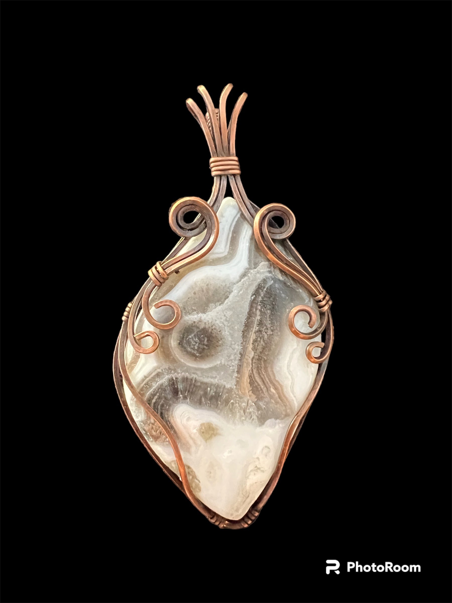 Phantom Lace Agate in Bare Copper wire 2 3/4 inches long
