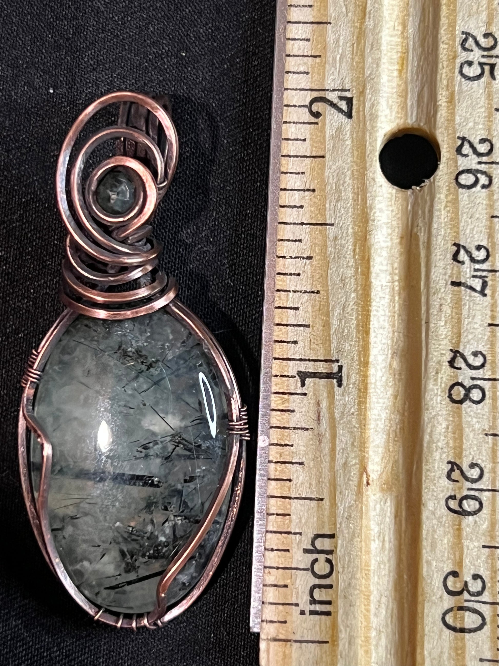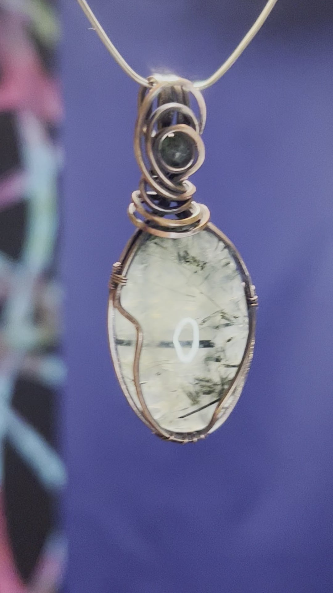 Prehnite wrapped in Bare Copper Oxidized and polished for an Antique look.