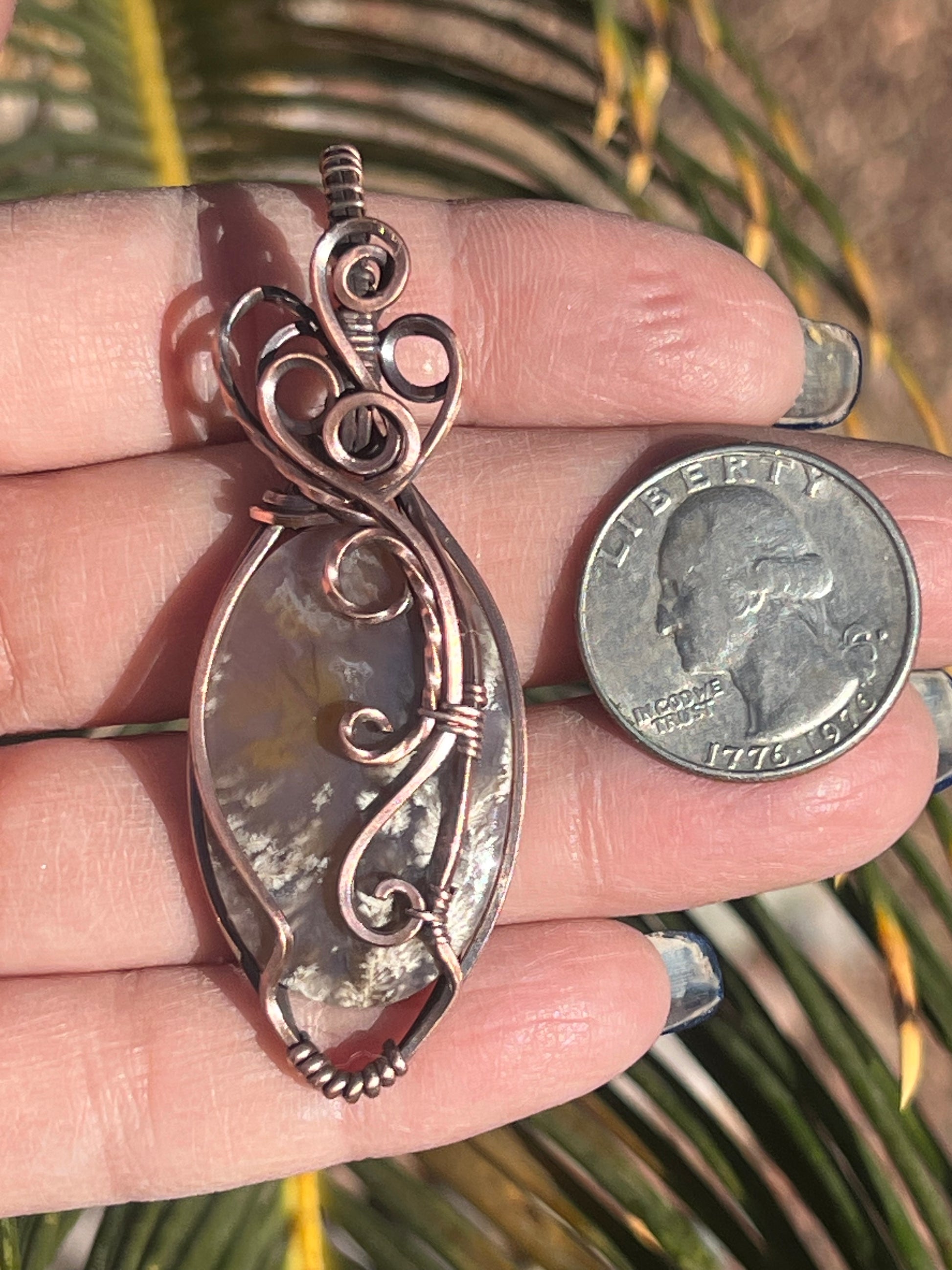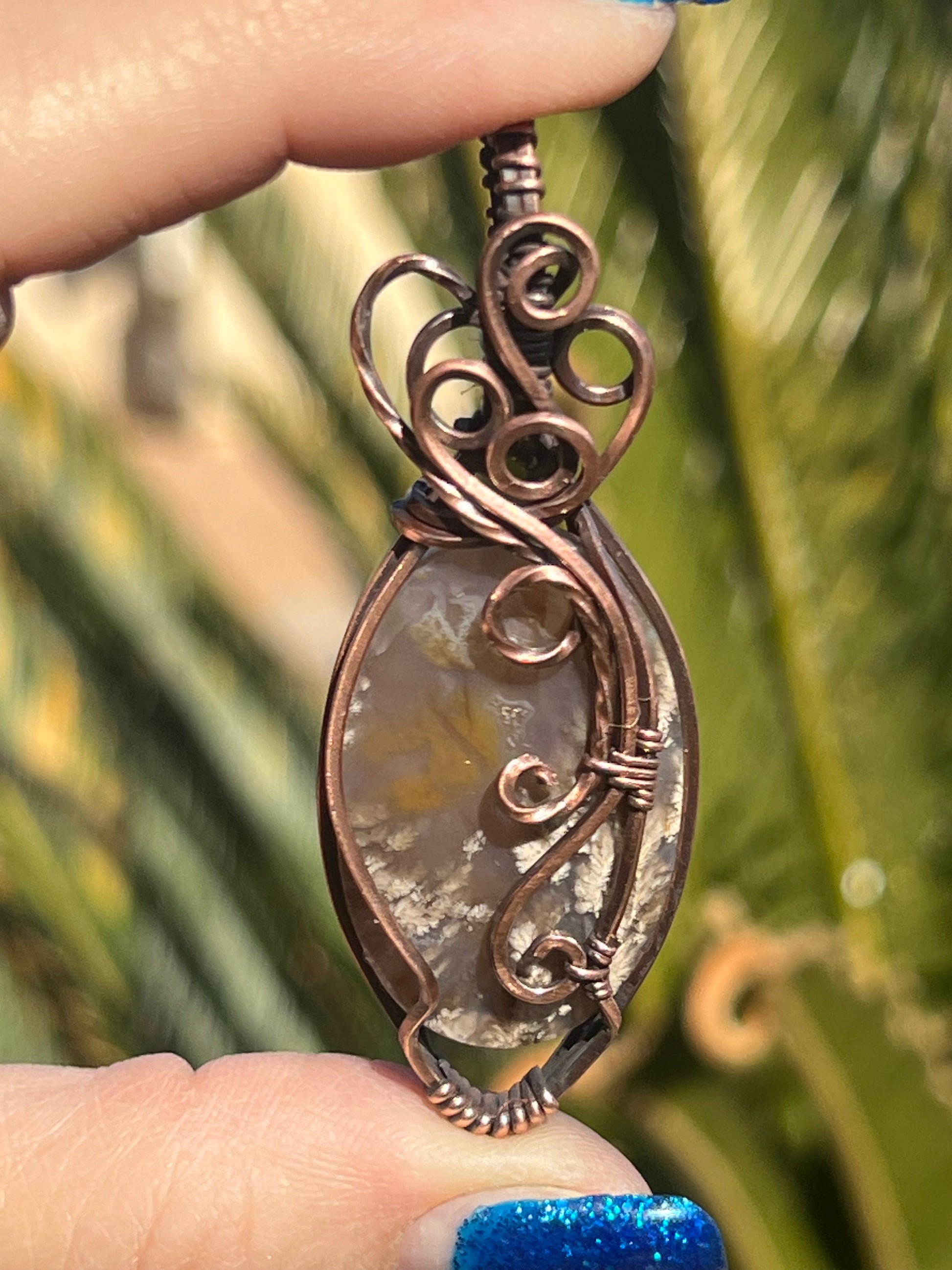Purple Moss Agate In Bare Copper Oxidized & Polished for an Antique look.