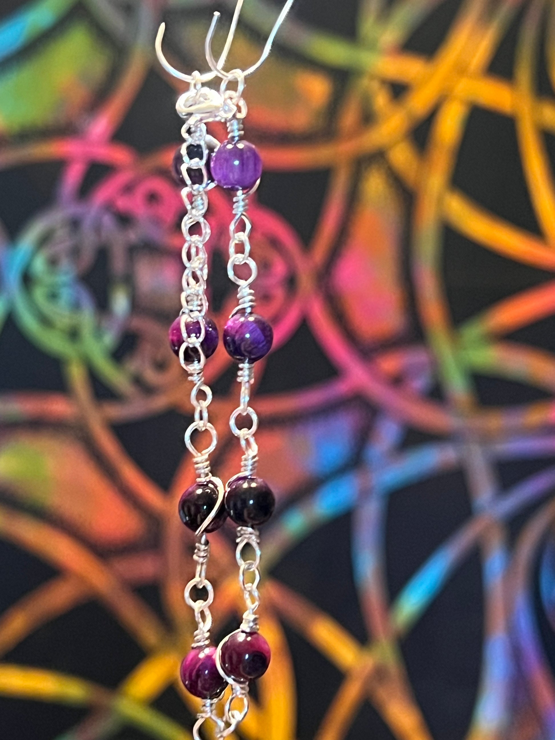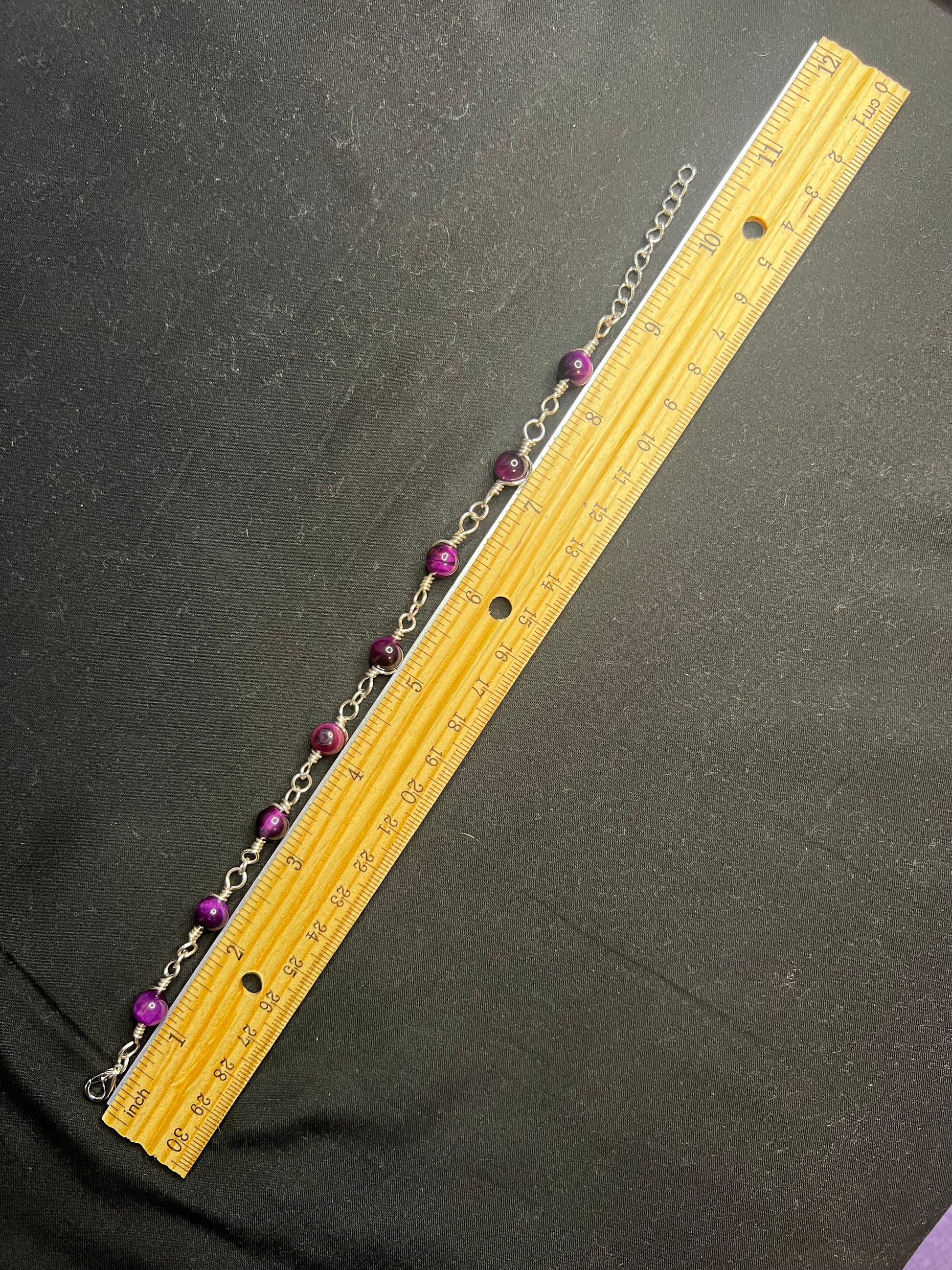 Purple Tigers eye beads wrapped in Silver Parawire fits 9”-10.5” wrist or ankle