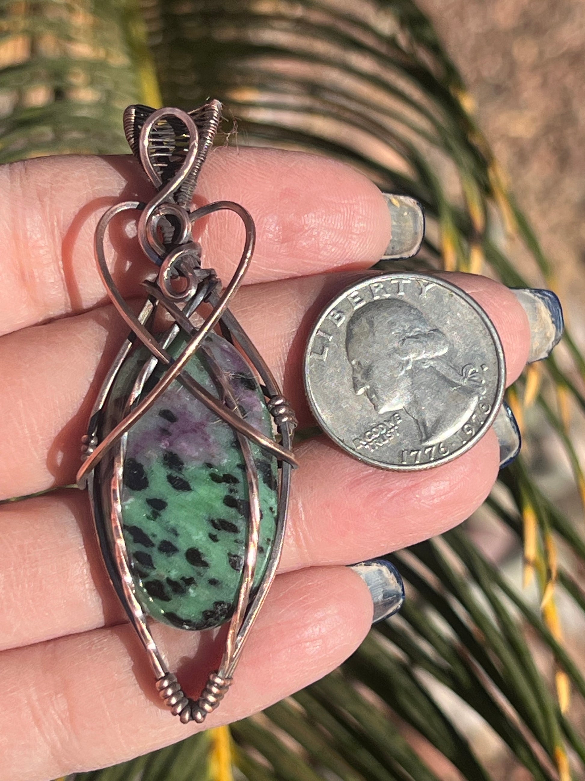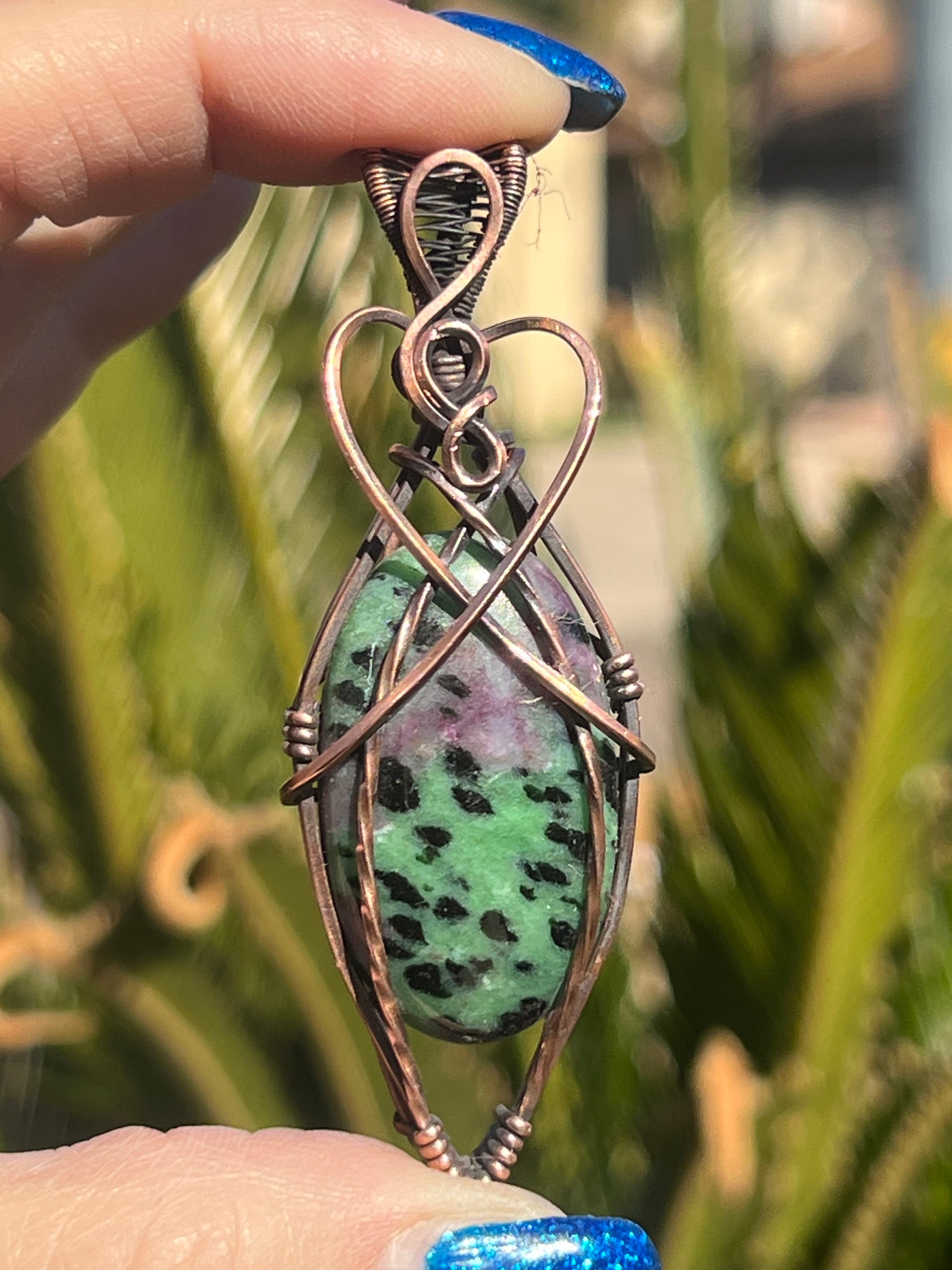 Ruby Zoisite wrapped in Bare Copper Oxidized & Polished for an Antique Look