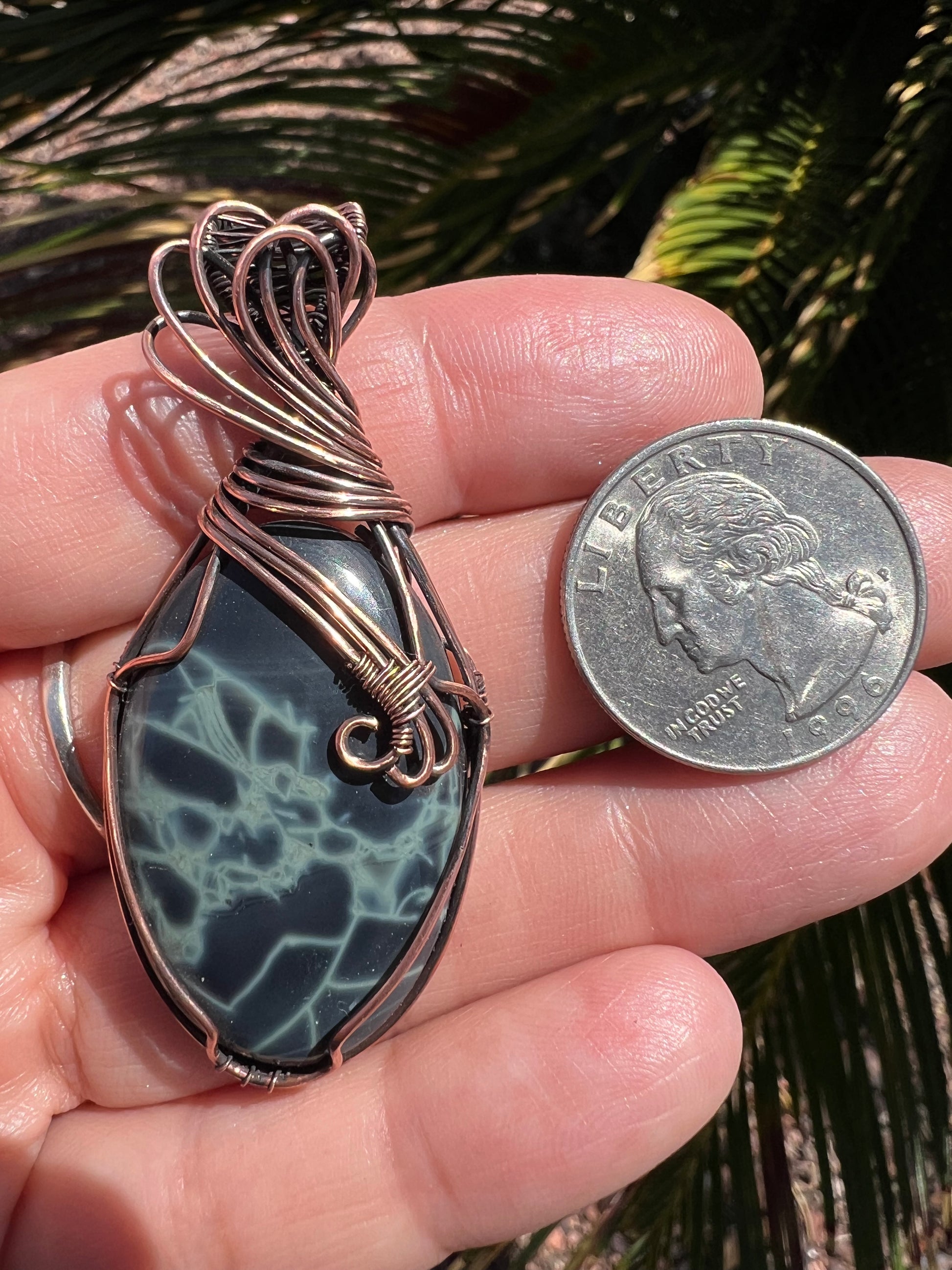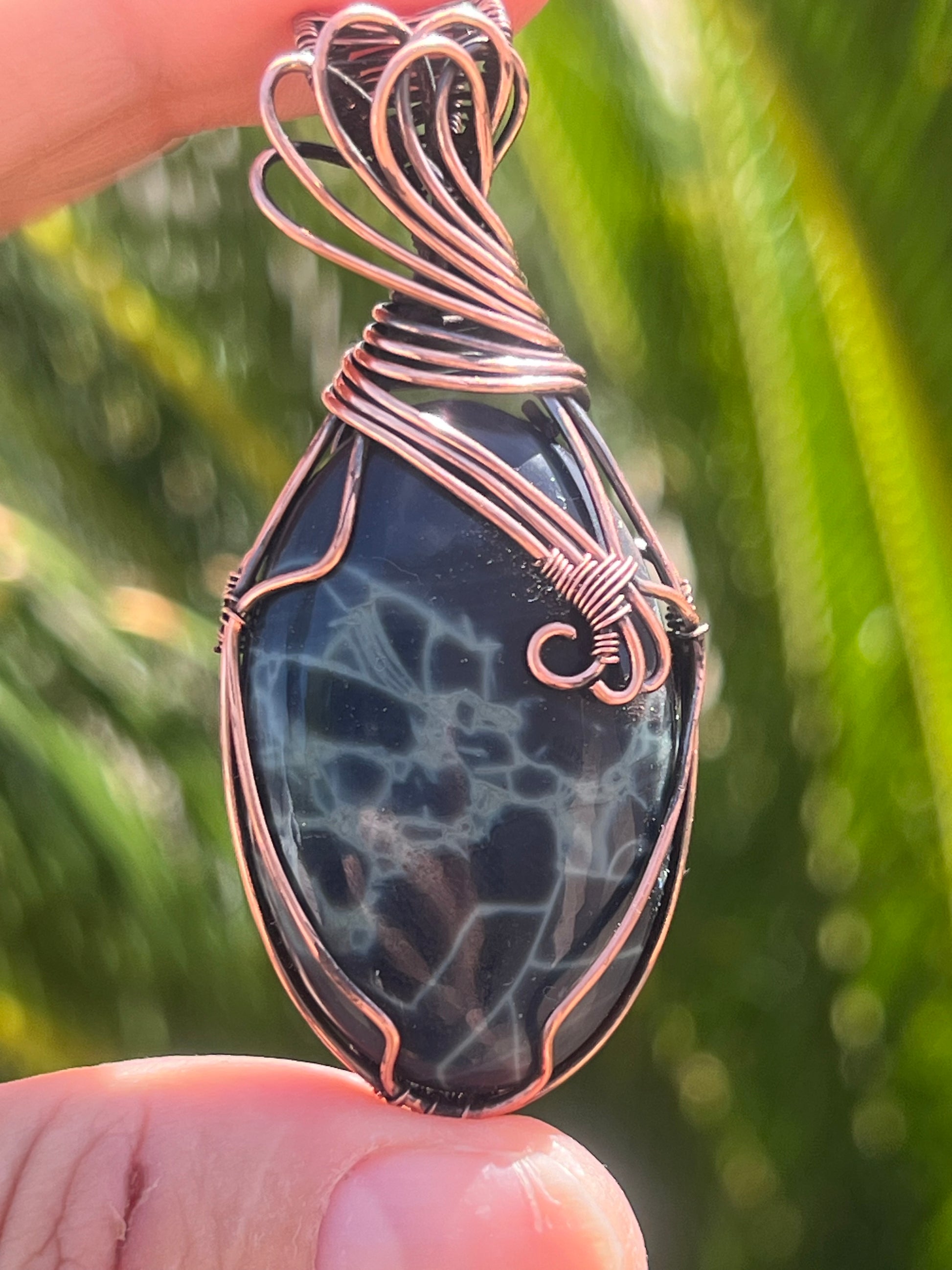 Spiderweb Obsidian wrapped in Oxidized Bare Copper Wire