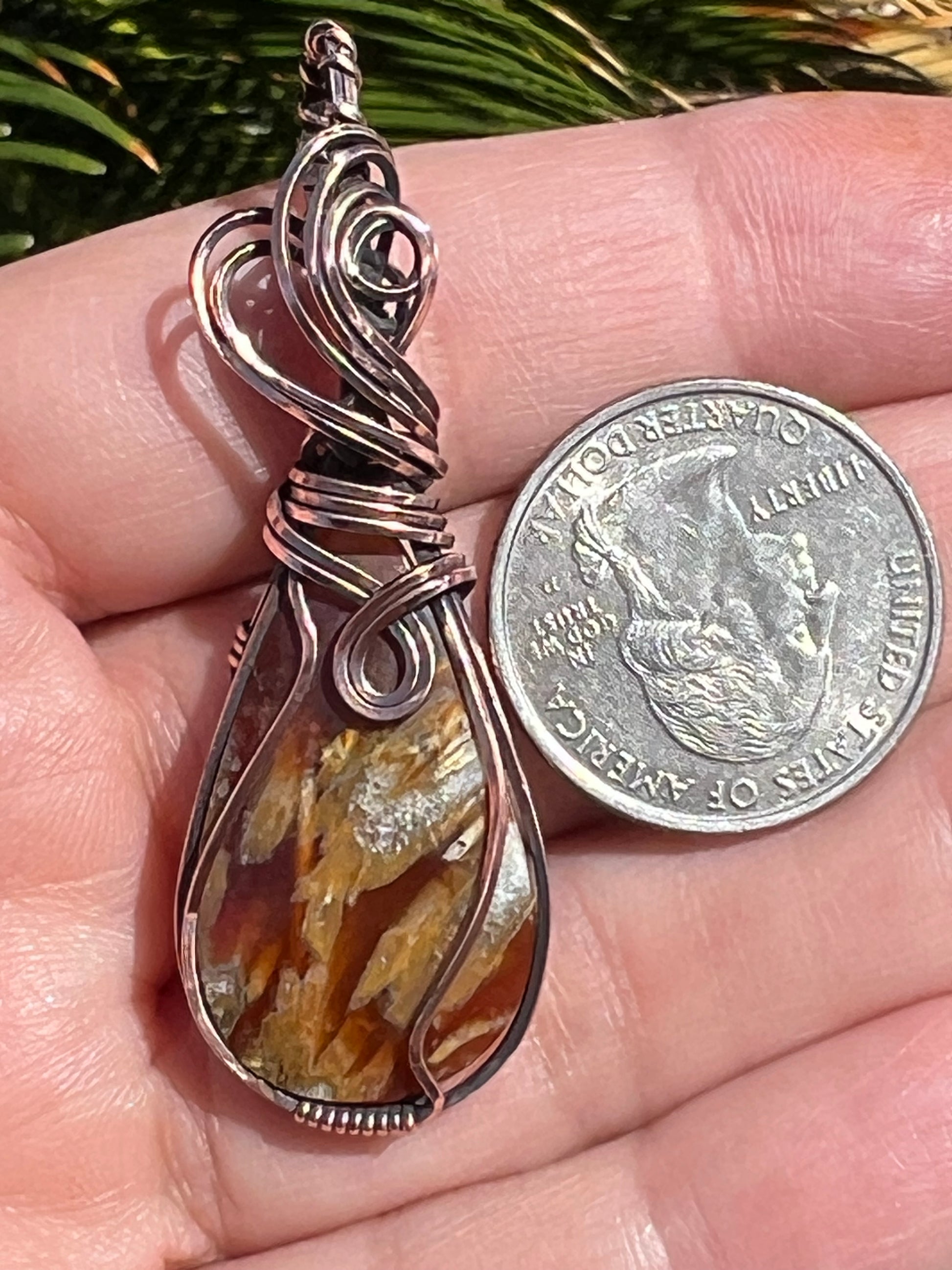 Tube Agate In Bare Copper wire Oxidized and polished for an antique look