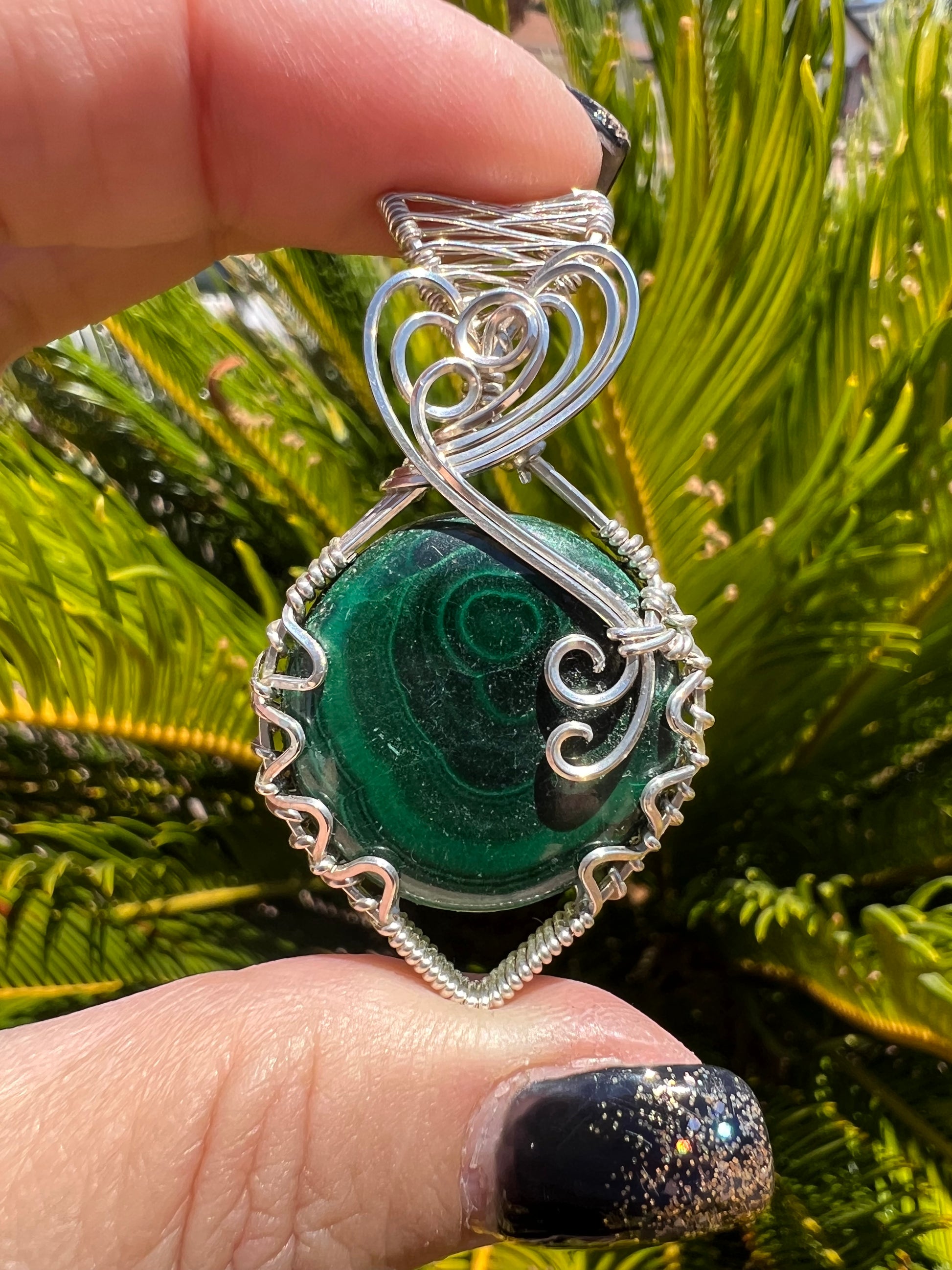 With rich green ripples echoing ancient wisdom, Emerald Echo carries the grounding power of malachite—stone of transformation, protection, and deep heart healing. Wrapped in sterling silver waves, this pendant harmonizes strength and softness, guiding you into your next evolution with courage and grace.